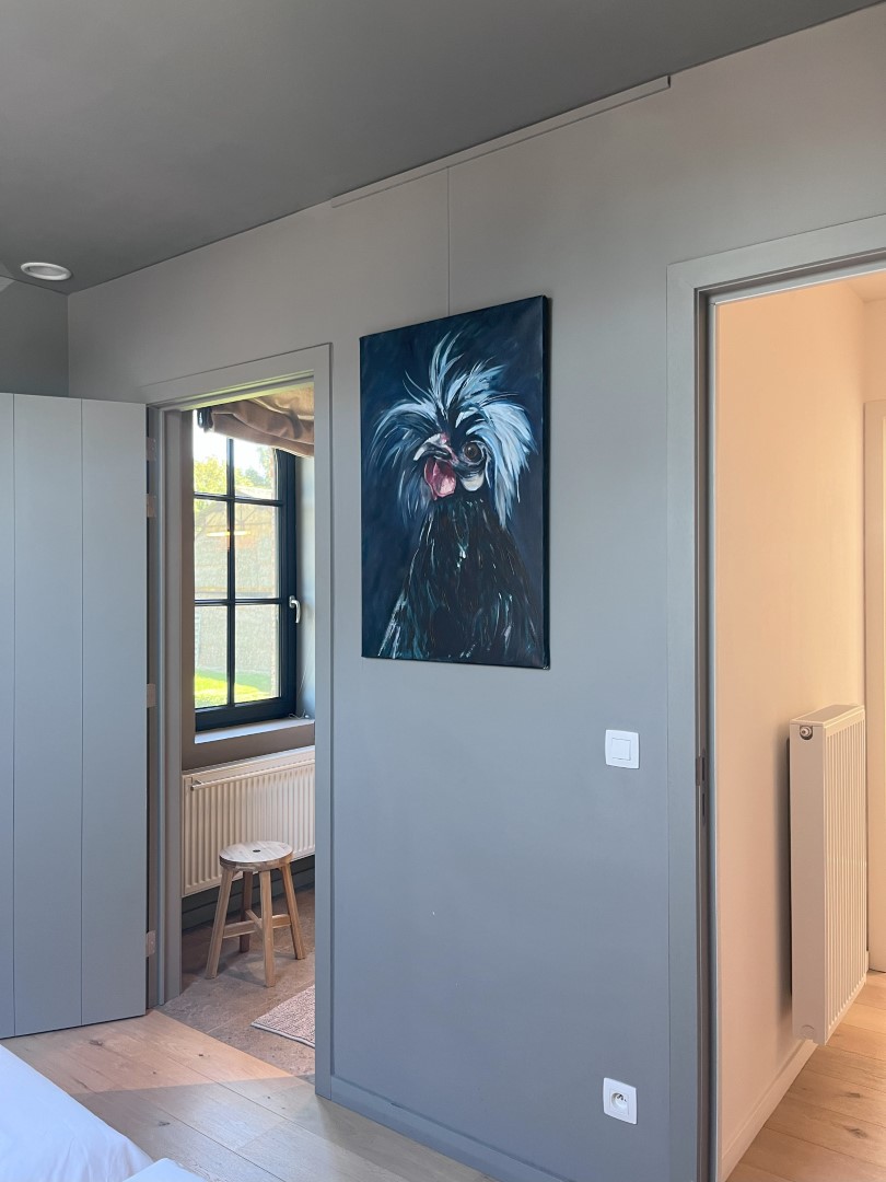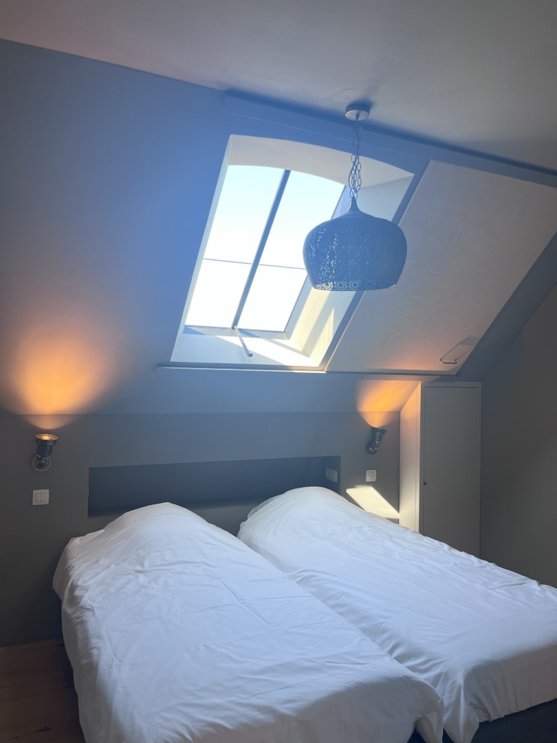 - Er zijn 5 slaapkamers, 1 op het gelijkvloers (toegankelijk voor minder-validen) en 4 op de eerste verdieping. De slaapkamer op het gelijkvloers heeft een tweepersoonsbed (180 cm), de kamers boven hebben elk 2 éénpersoonsbedden (90 cm).
